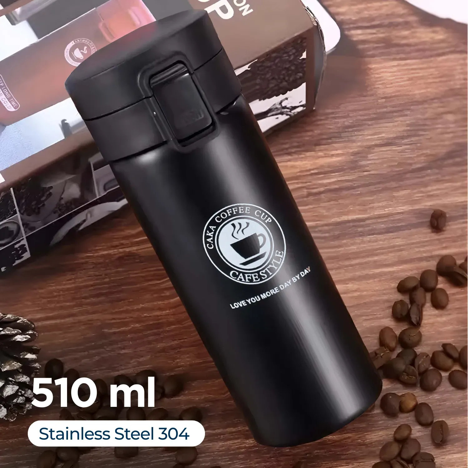 Lebih higienis dengan permukaan halus dan tidak berpori, dan anti karat untuk penggunaan jangka panjang. Dilengkapi juga dengan tutup vakum super erat, dan lapisan silikon yang menjaga minuman tetap hangat, dan anti tumpah.