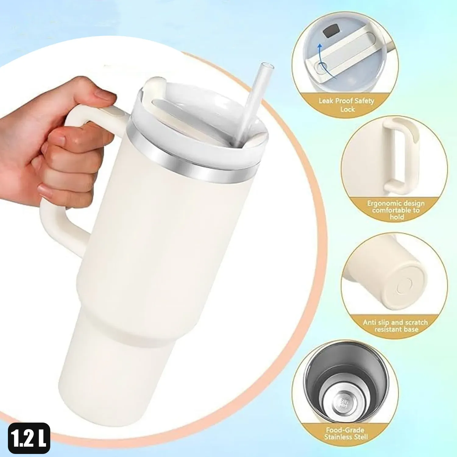 Selain itu, desainnya yang kekinian dengan bagian bawah yang lebih kecil agar dapat dimasukkan ke dalam cup holder meja atau mobil, gagang panjang yang membuatnya mudah dibawa, dan sedotan untuk menunjang sesi minum yang lebih nyaman.