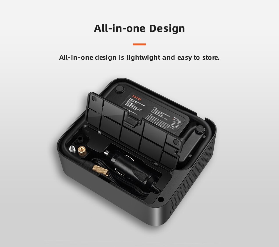 | Portabel Dengan desain portabel, 70mai memastikan kemudahan dalam penyimpanan dan penggunaan. Pompa ini sangat ringan, sehingga mudah dibawa bepergian. Selain itu, alat ini dirancang dengan tingkat kebisingan yang rendah, yaitu tidak lebih dari 78.9 dB, sehingga Anda dapat menggunakannya tanpa khawatir mengganggu orang lain di sekitar Anda.