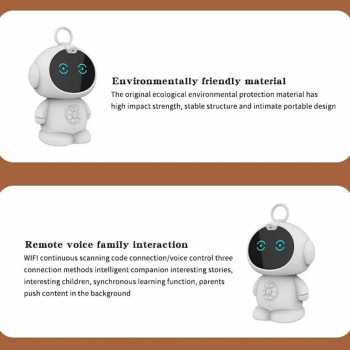| Fitur Edukatif Lengkap Robot smart AI menyediakan berbagai konten edukasi seperti dongeng, lagu anak, lullaby, hingga cerita pengantar tidur. Konten yang beragam membantu meningkatkan imajinasi, kreativitas, dan kemampuan mendengar anak. Selain itu, anak jadi lebih mudah tidur dengan suasana yang tenang dan nyaman. Sangat cocok sebagai teman belajar sekaligus hiburan harian. |
