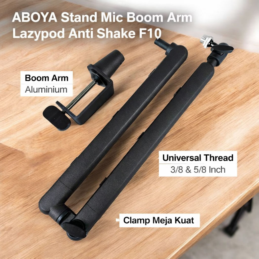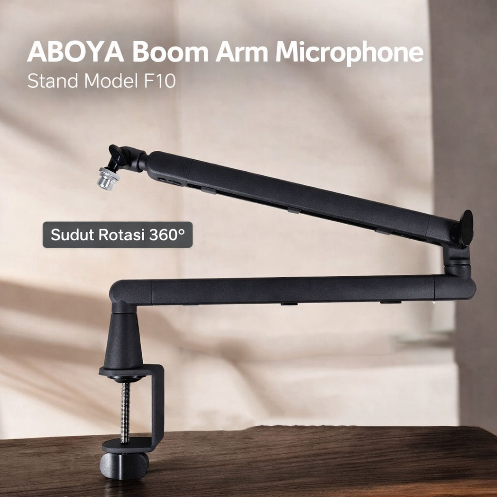 Sering pegal karena harus memegang mikrofon saat live streaming, podcast, meeting, atau rekaman? Kini Anda bisa bekerja lebih nyaman dengan stand mic boom arm ABOYA F10. Desain fleksibel membuat posisi mikrofon lebih ideal, suara lebih stabil, dan meja kerja lebih rapi. Cocok untuk content creator, gamer, podcaster, maupun penggunaan profesional.