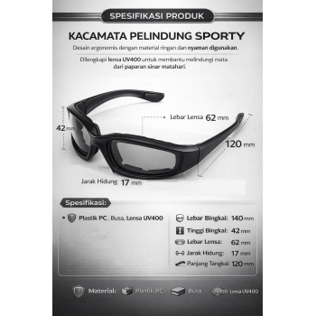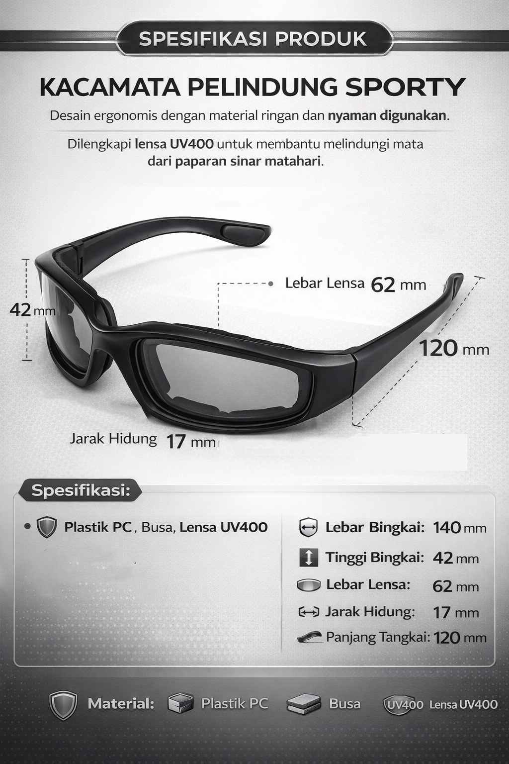 🔹 Mampu melindungi mata dari angin, debu, serta partikel saat berkendara.