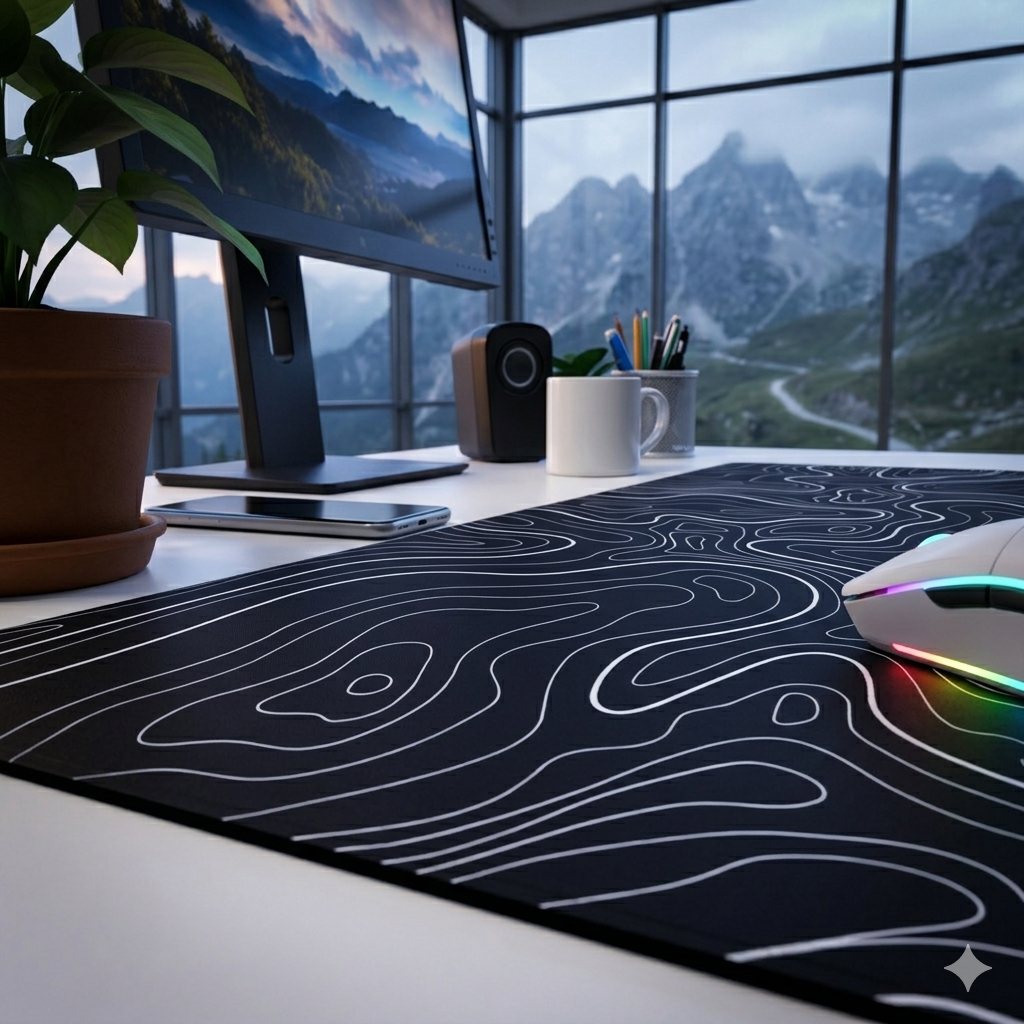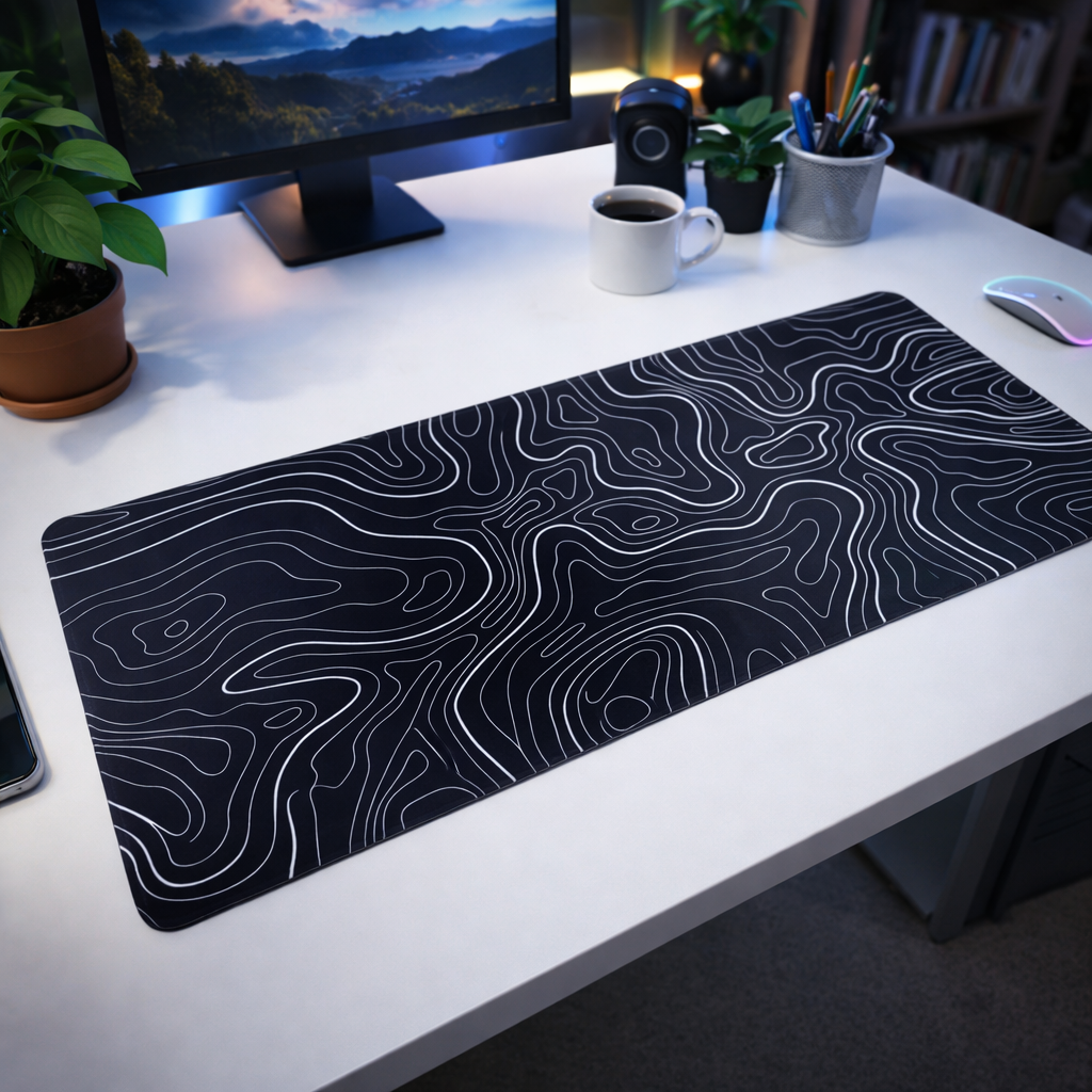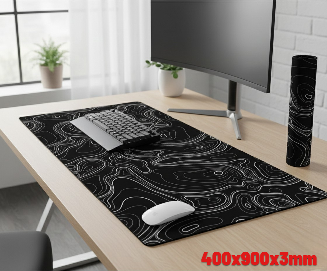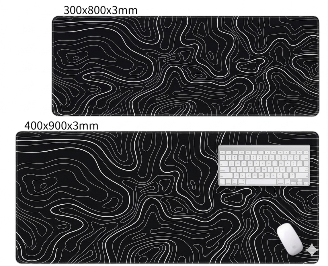 | Desain Topografi Minimalis dan Modern Mouse pad ini mengusung desain garis kontur topografi yang unik dan tampil beda dibanding mouse pad biasa. Kombinasi warna hitam dengan garis putih memberikan kesan clean, elegan, dan premium sehingga cocok untuk berbagai konsep setup meja. Sangat pas digunakan untuk meja kerja, meja gaming, meja belajar, maupun workstation agar terlihat lebih rapi dan estetik. |