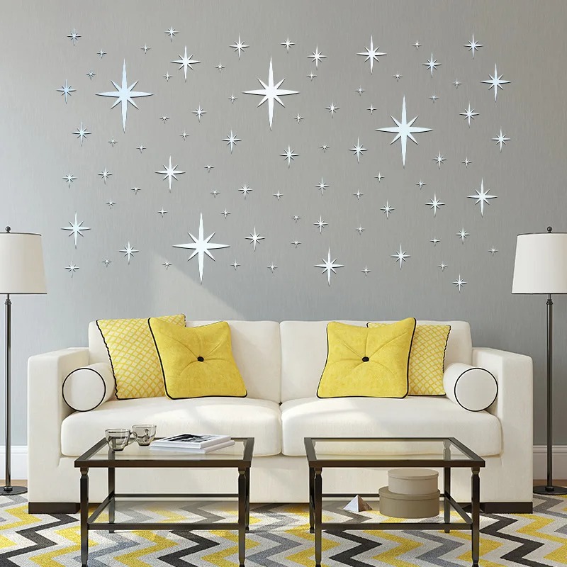 | Dekorasi Bintang Reflektif yang Memikat Percantik ruangan dengan stiker dinding berbentuk bintang dalam berbagai ukuran untuk menciptakan tampilan abstrak namun tetap elegan. Permukaan reflektifnya mampu memantulkan cahaya dan objek di sekitar sehingga memberikan efek berkilau yang memperindah suasana ruang, terutama saat terkena pencahayaan lampu atau sinar alami. |