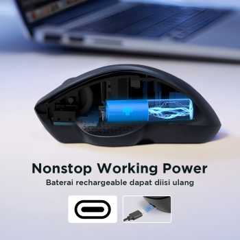 | Baterai Rechargeable Mouse menggunakan baterai rechargeable berkapasitas 400 mAh sehingga tidak perlu mengganti baterai secara berkala. Pengisian daya dilakukan melalui port USB Type-C yang praktis dan modern. Sistem ini membuat penggunaan mouse lebih efisien untuk jangka panjang. |