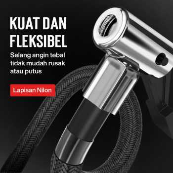 | Pilihan Adapter Praktis Dilengkapi 3 adapter, gunakan untuk mengisi ulang angin pada ban mobil, motor, sepeda, hingga bola dengan praktis. Tak perlu repot memeriksa dan mengatur tekanan manual. |
