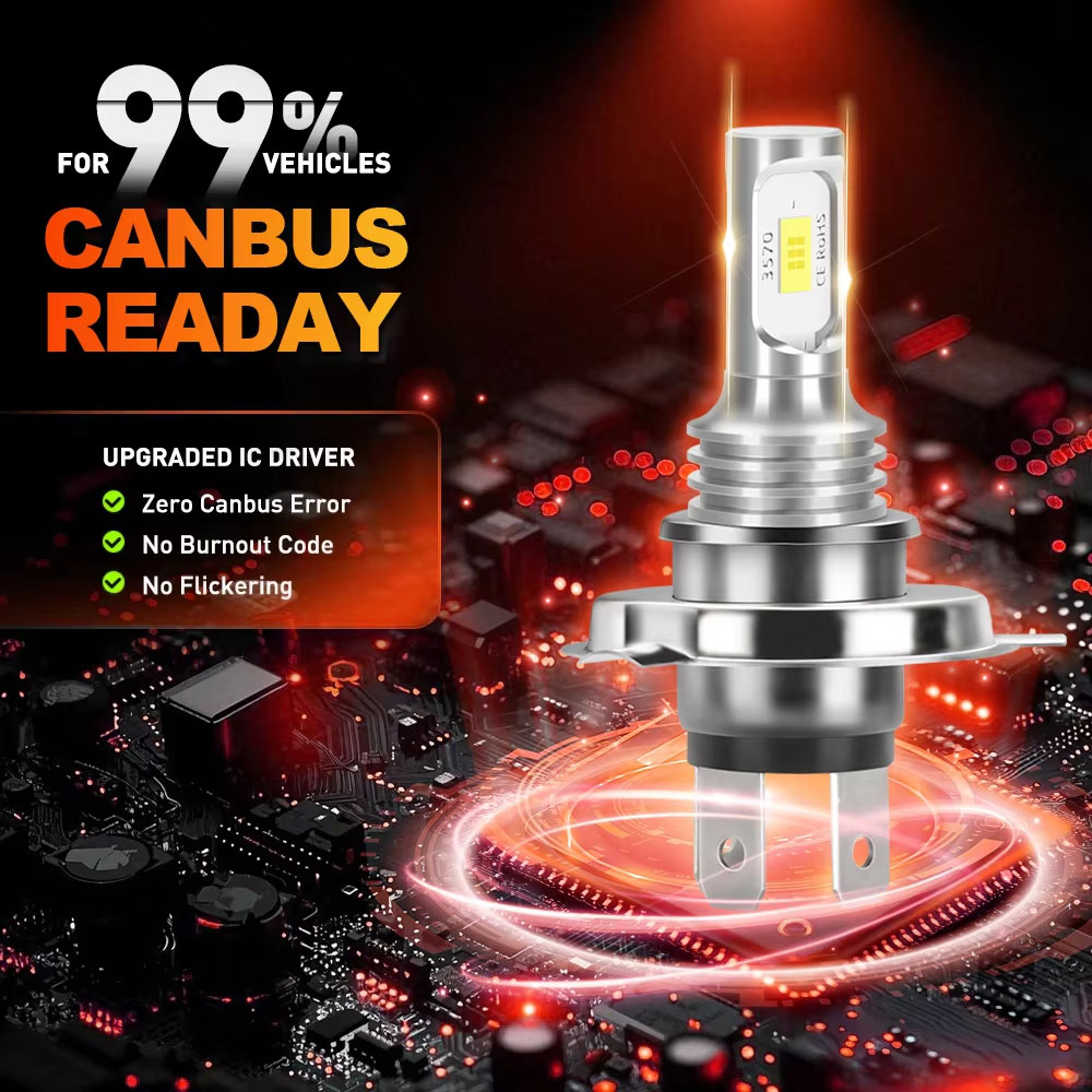 | CANBUS Anti Eror Dilengkapi built-in driver canggih yang kompatibel dengan 99% sistem kendaraan. Menghindari error di dashboard, lampu berkedip (flicker), atau gangguan sistem listrik. Lampu LED H4 ini memberikan performa stabil sejak pertama dipasang. Aman untuk mobil modern maupun lama. |