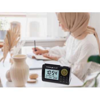 | Alarm Azan 5 Waktu Kini tak perlu lagi mengatur alarm secara manual untuk pengingat ibadah. Jam meja AL‑HARAMEEN dapat diatur otomatis untuk menyalakan alarm salat 5 waktu dengan variasi suara azan dan pengaturan volume. Waktu azan dapat disesuaikan dengan berbagai kota di seluruh dunia. Anda juga dapat mengatur timer iqamah untuk menandai waktu salat agar tepat waktu. |