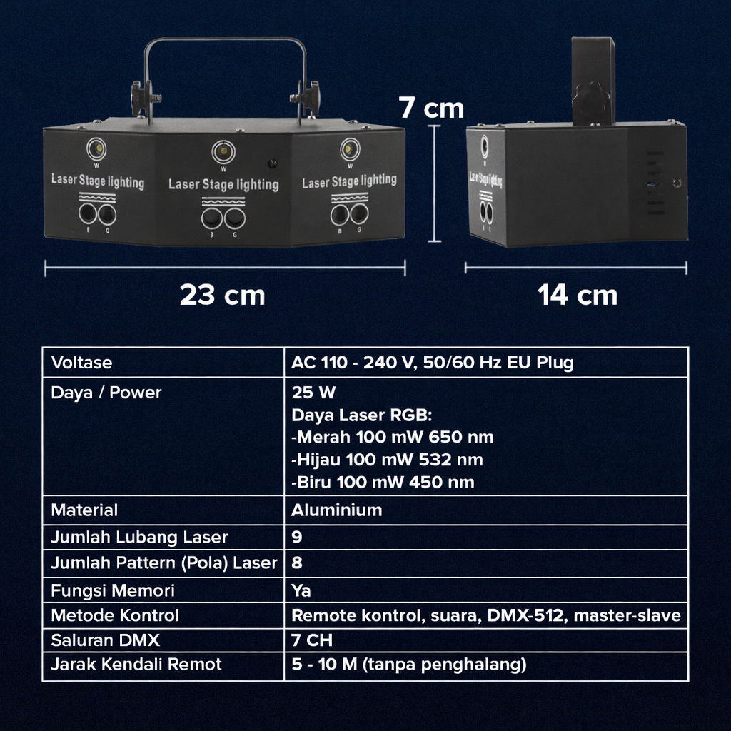 | Kontrol Mudah dengan Remot untuk Menyesuaikan Suasana Dilengkapi dengan remote control yang memudahkan Anda untuk mengatur berbagai efek cahaya sesuai dengan suasana acara. Anda dapat mengubah warna laser, kecepatan strobo, dan mode pencahayaan hanya dengan satu sentuhan. Dengan jangkauan kontrol hingga 5-10 M, Anda dapat mengendalikan suasana pesta tanpa harus mendekati proyektor. |