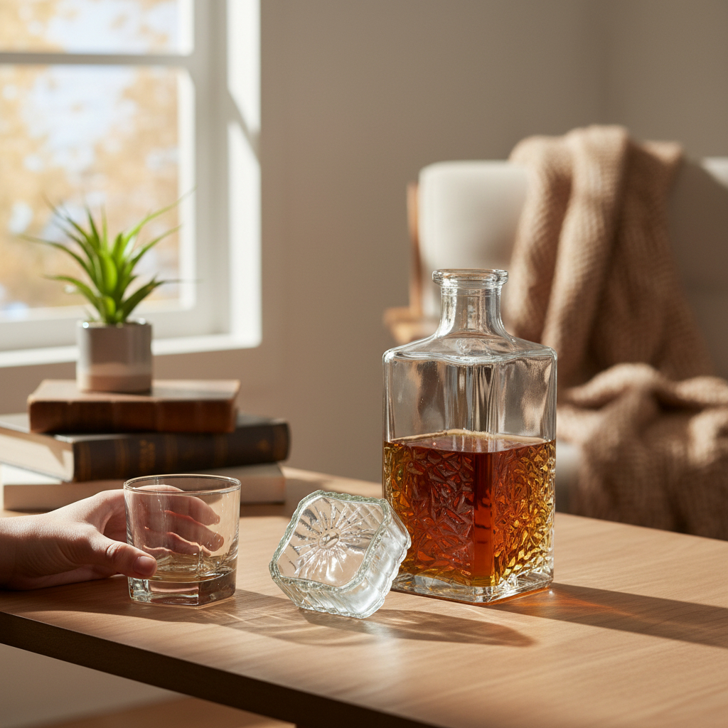 Buat sesi minum Anda makin nikmat dengan whisky decanter dari ALISWINE. Material kaca dibalut corak yang unik membuatnya tampak mewah saat menampung whisky. Selain unsur estetika, menyimpan minuman di dalam decanter juga dapat meningkatkan aroma whisky dan mencegah oksidasi. Anda pun bisa merasakan pengalaman minum yang optimal tanpa merusak rasa whisky, liquor, ataupun scotch.
