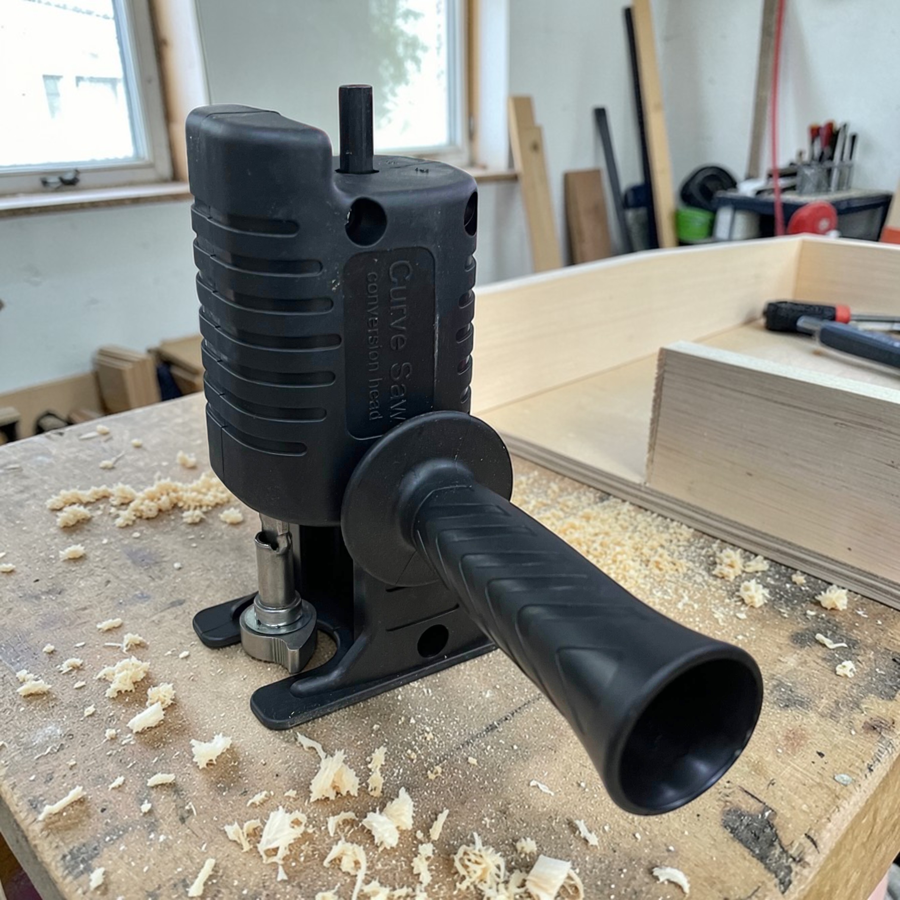| Konverter Gergaji Konverter gergaji dari Alloet bekerja dengan bantuan dari gergaji listrik. Pasang konverter ini ke kepala pengeboran, maka bor Anda akan memiliki fungsi gergaji. Alat ini membuat Anda dapat menggergaji berbagai material secara otomatis sehingga lebih efektif. |