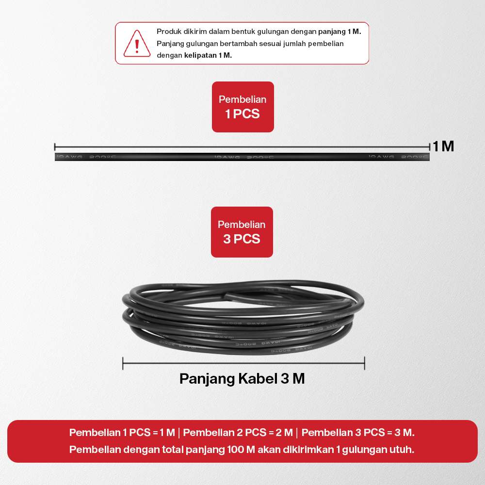 | Aneka Pilihan Ukuran Tersedia dalam banyak varian ukuran, mulai dari 4 AWG hingga 16 AWG, gunakan kabel untuk emnyuplai listrik ke berbagai kebutuhan. |