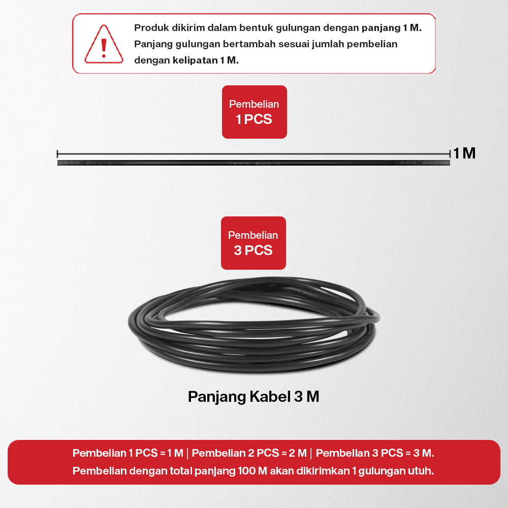 | Aneka Pilihan Ukuran Tersedia dalam banyak varian ukuran, mulai dari 4 AWG hingga 16 AWG, gunakan kabel untuk emnyuplai listrik ke berbagai kebutuhan. |