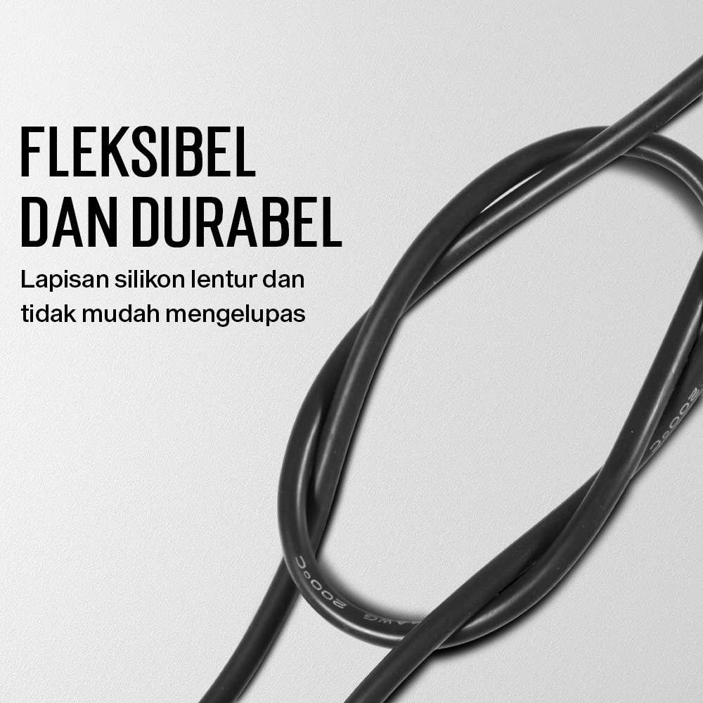 Lapisan silikon lentur membuat kabel AWG dapat digunakan di beragai tempat dan kondisi. Bahan ini juga tidak mudah mengelupas sehingga aman digunakan untuk jangka panjang.