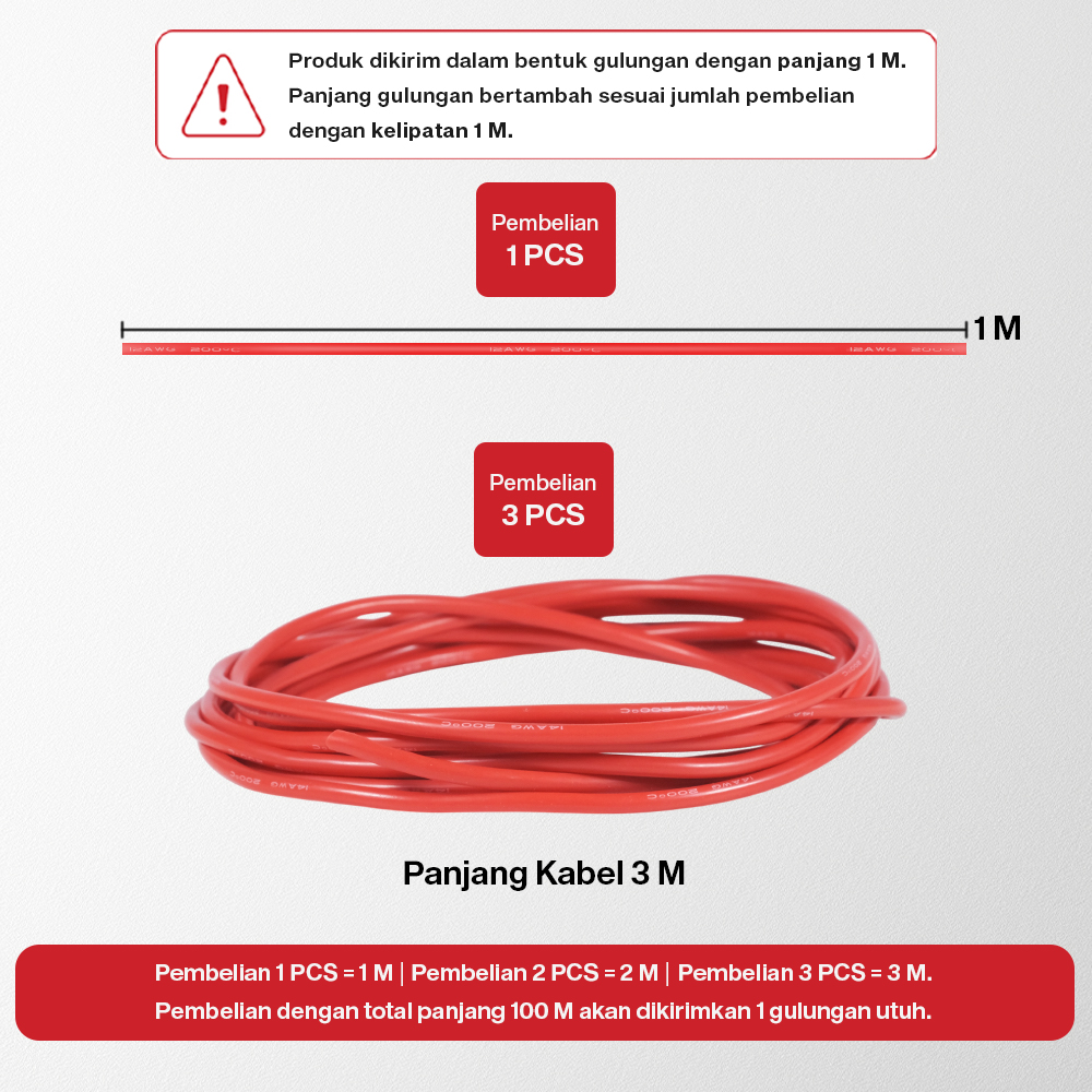 Gambar produk ALLWELL Kabel AWG Silicone Extra Soft Temperature Resistant Wire 1M 12 AWG - MU-5