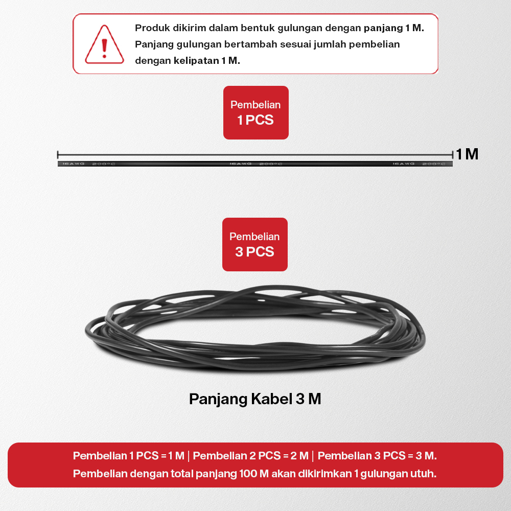 | Aneka Pilihan Ukuran Tersedia dalam banyak varian ukuran, mulai dari 4 AWG hingga 16 AWG, gunakan kabel untuk emnyuplai listrik ke berbagai kebutuhan. |