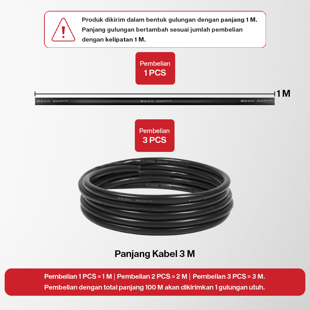 | Stabil di Berbagai Kondisi Memiliki ketahanan suhu tinggi, kabel AWG ini dapat menghantarkan listrik dengan baik mulai dari suhu -60 °C hingga 200 °C tanpa mengurangi kualitasnya. |