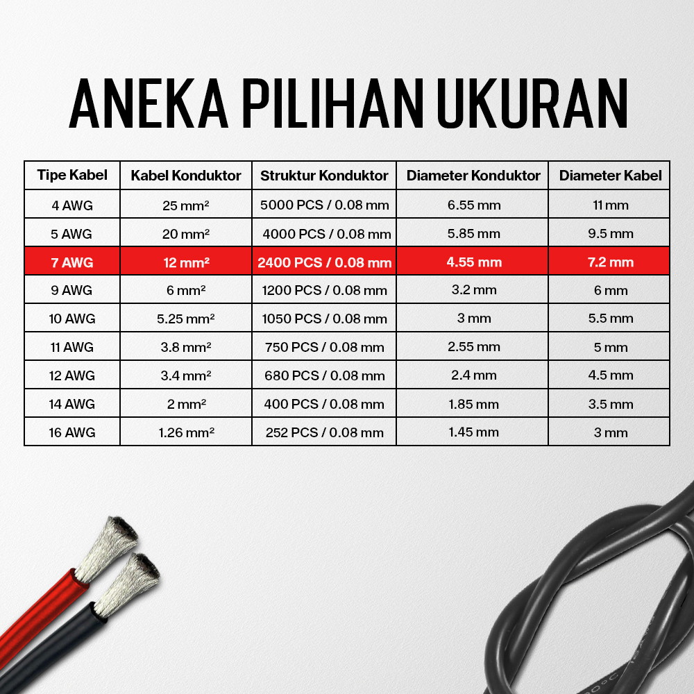 Gambar produk ALLWELL Kabel AWG Silicone Extra Soft Temperature Resistant Wire 1M 7 AWG - MU-5