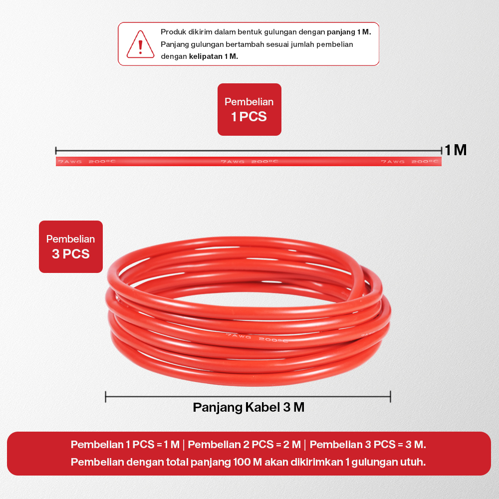 Gambar produk ALLWELL Kabel AWG Silicone Extra Soft Temperature Resistant Wire 1M 7 AWG - MU-5