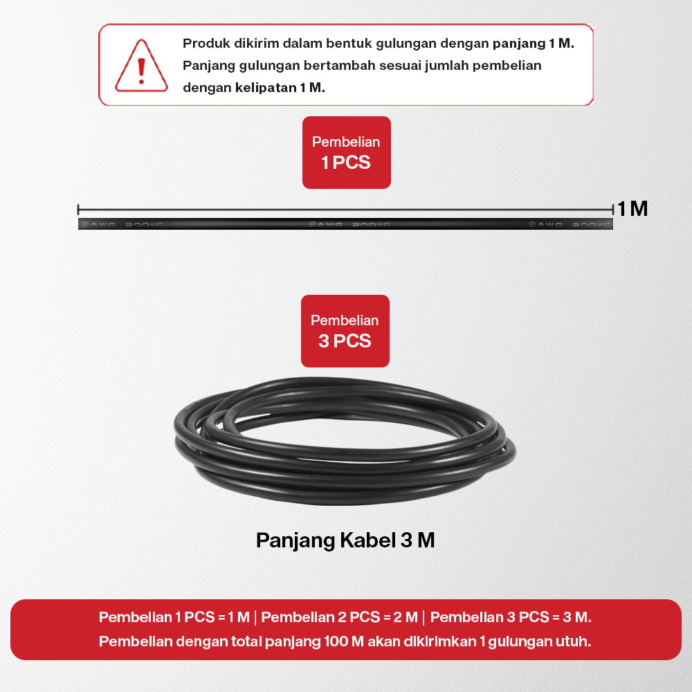 | Aneka Pilihan Ukuran Tersedia dalam banyak varian ukuran, mulai dari 4 AWG hingga 16 AWG, gunakan kabel untuk emnyuplai listrik ke berbagai kebutuhan. |