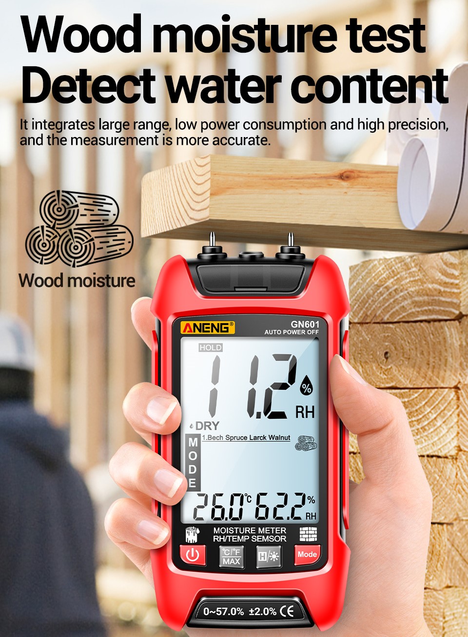 Untuk memastikan kualitas konstruksi, Anda harus memperhatikan tingkat kelembapan materialnya. Itulah mengapa Anda membutuhkan alat pengukur kelembapan dari ANENG. Alat ini mampu mengukur kelembapan relatif atau RH pada material kayu, gipsum, dinding, karton, dan lain sebagainya. Anda pun dapat memilih material yang tepat atau melakukan evaluasi dan restorasi bangunan.