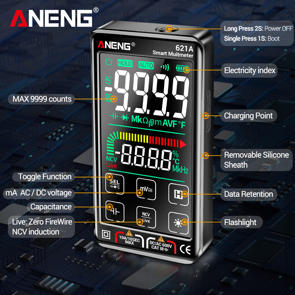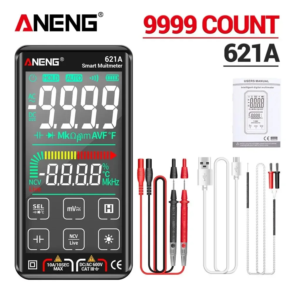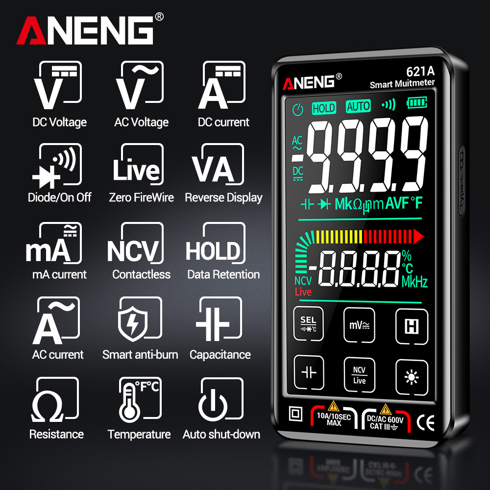 Memeriksa arus listrik tidak bisa dilakukan sembarangan. Anda dapat melakukan pemeriksaan dengan aman menggunakan smart digital multimeter 621A dari ANENG. Secara akurat, layar LED akan menampilkan hasil pengukuran arus AC/DC, tegangan AC/DC, resistansi, kapasitansi, frekuensi, hingga diode. Hasil pengukuran akan membantu Anda menganalisa tindakan yang tepat saat melakukan perbaikan atau pemeliharaan perangkat elektronik.