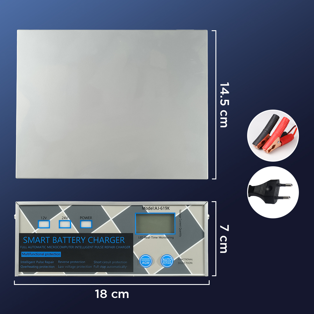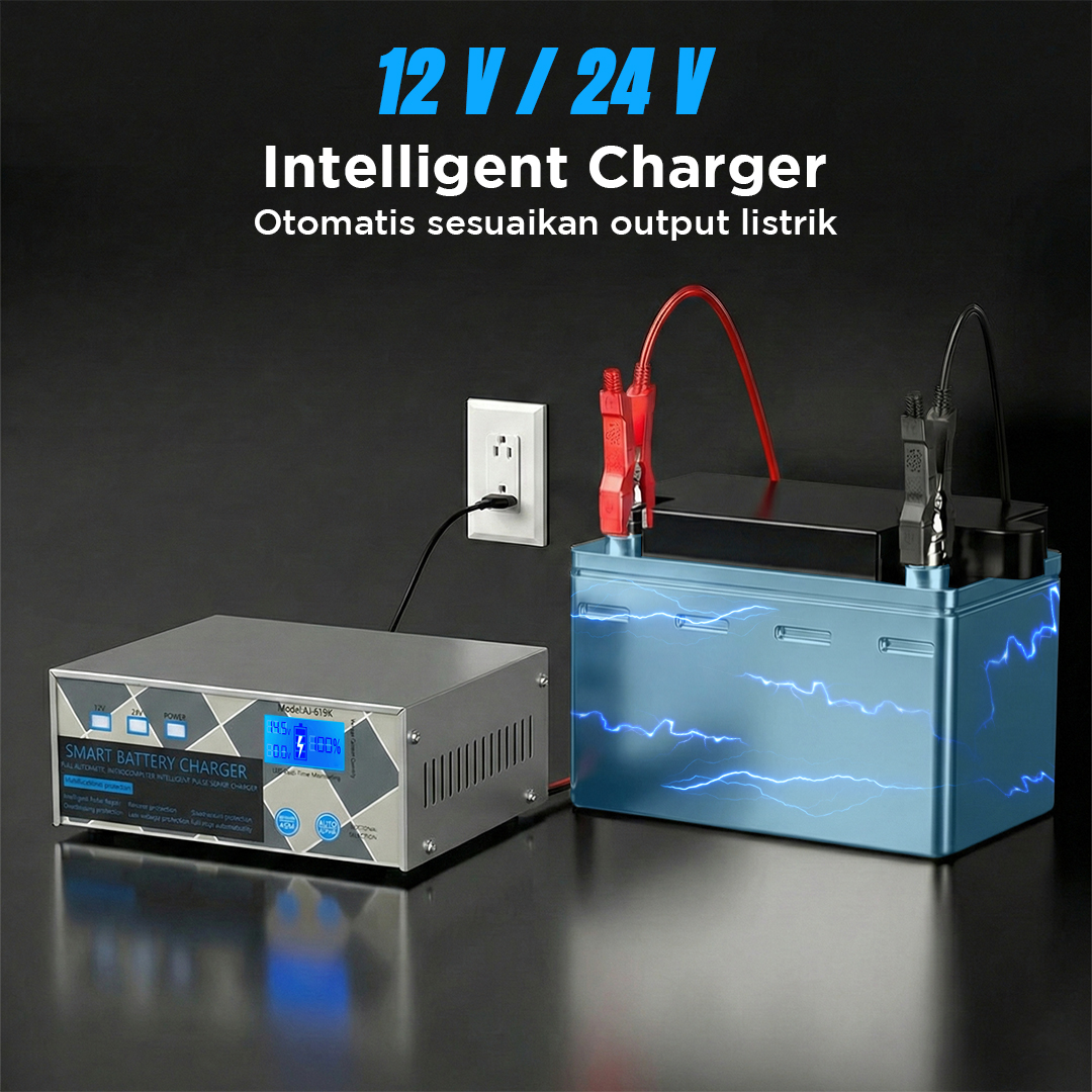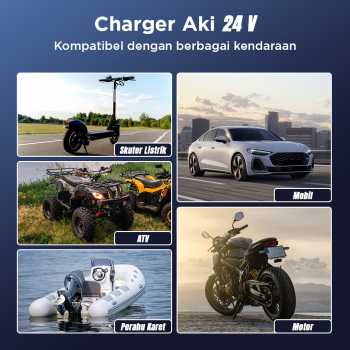 | Otomatis Sesuaikan Output Dibekali dengan fitur intellegent charger, charger aki otomatis menyesuaikan output 12 V atau 24 V listrik sesuai jenis kendaraan. Output juga akan diturunkan saat baterai terisi penuh untuk cegah overcharge. |