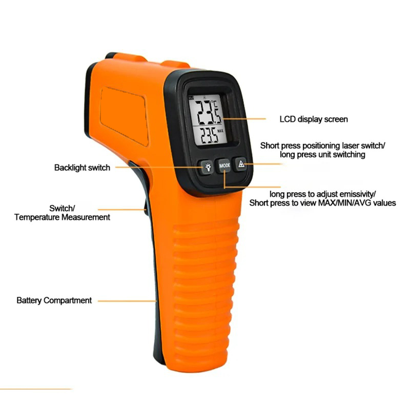 Anda bisa mengukur temperatur berbagai objek dengan mudah menggunakan termometer industrial dari Anseny. Menggunakan teknologi laser, kini Anda dapat mengukur temperatur tanpa menyentuh objek secara langsung. Dilengkapi dengan layar LCD backlit sehingga akan lebih mudah untuk membaca informasi. Desain thermogun ergonomis untuk memudahkan penggunaannya.