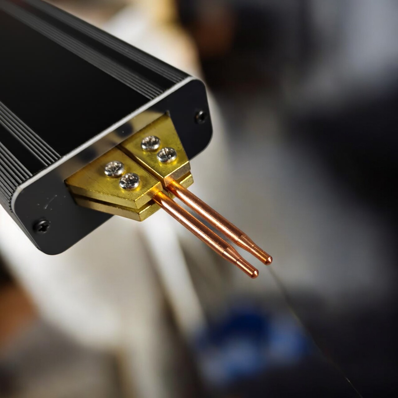 | Pengelasan Titik Double Pulse Presisi Tinggi Teknologi double pulse menghasilkan titik las yang lebih kuat dan konsisten. Cocok untuk pengelasan plat nikel hingga ketebalan 0.3 mm dengan hasil rapi. Risiko percikan dan kerusakan material dapat diminimalkan. Hasil las terlihat profesional dan lebih tahan lama. |