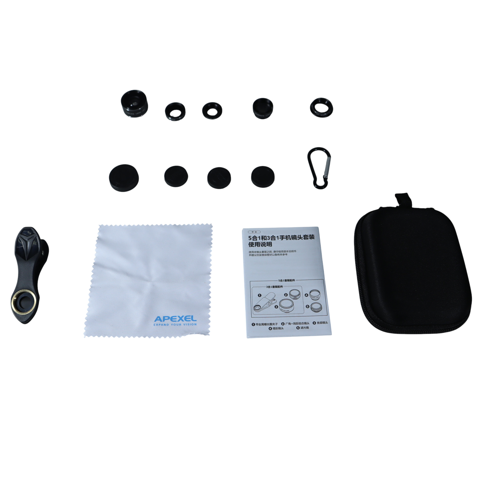 Produk dari APEXEL Ini merupakan aksesori sempurna untuk keperluan fotografi ponsel Anda. Aksesori kamera smartphone ini hadir dengan 5 jenis pilihan lensa yaitu lensa fisheye, makro, wide, telephoto dan lensa CPL. Dengan desain klip, lensa kamera tambahan ini bisa Anda gunakan di banyak tipe smartphone Android maupun iPhone.