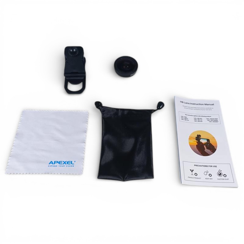 | Mudah Digunakan Anda dapat menggunakan lensa APEXEL APL-HB170 dengan mudah. Cukup hubungkan lensa tambahan ini pada lensa utama kamera smartphone maka lensa sudah siap digunakan. Pastikan posisi klip lensa sudah sesuai dengan letak kamera smartphone. |