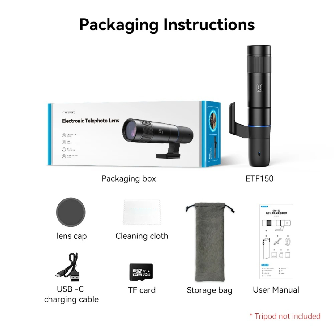 Abadikan setiap momen dengan detail luar biasa menggunakan lensa telephoto dari APEXEL. Didesain dengan teknologi optik canggih dan konektivitas pintar, perangkat ini menggabungkan kekuatan teleskop, kamera, dan perekam video dalam satu alat praktis. Dengan kemampuan zoom optik hingga 45 kali dan resolusi tinggi 1920 x 1080 pixels, Anda dapat memotret, merekam, dan membagikan hasilnya langsung melalui ponsel hanya dengan satu sentuhan.