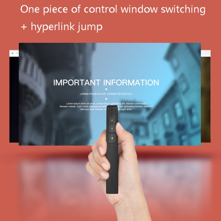 | Buat Presentasi Menjadi Menarik Anda bisa membuat presentasi menjadi lebih menarik dengan menggunakan Deli laser pointer. Tunjuk bagian presentasi di layar menggunakan laser sehingga audiens menjadi lebih fokus dengan presentasi Anda. Laser merah mampu menjangkau hingga jarak 100 meter dengan jaringan wireless 2.4 GHz.