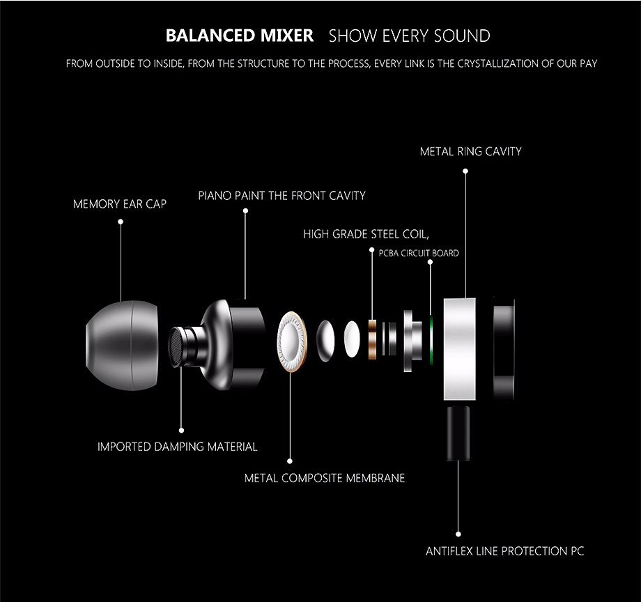 Dengan perpaduan yang seimbang dan struktur dari proses pembuatan yang rinci, Beevo EM330 komponen terbuat dari imoprted material yang luar biasa untuk membuat earphones dapat menahan getaran suara dan pemakaian yang lama.