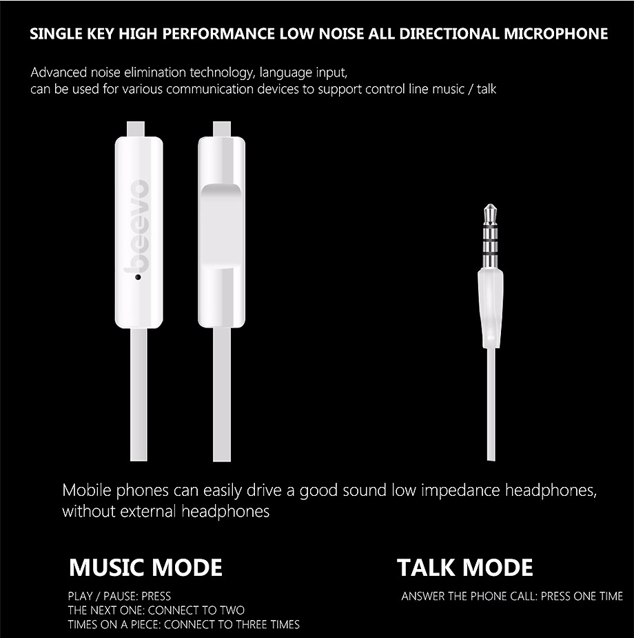 Mobile phone Anda akan dengan otomatis mendeteksi drive dari earphones, membuat microphone dari earphones Beevo lebih kuat walaupun tanpa external headphones.