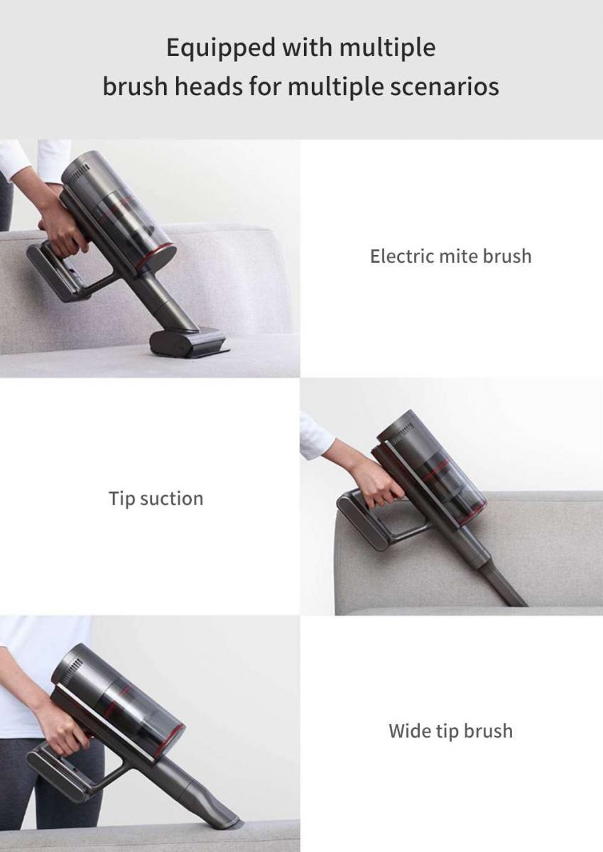 | Hand-held Design Selain digunakan untuk di rumah, vacuum cleaner dari Xioami ini juga cocok untuk membersihkan kotoran yang ada di mobil karena Anda tak perlu lagi menggunakan kabel untuk menyalakan penyedot debu ini.