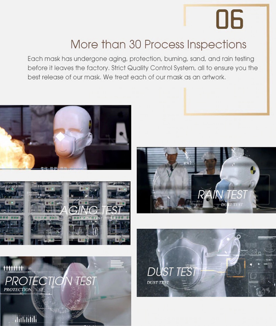 | Lebih dari 30 Proses Pemeriksaan Untuk menjamin kualitas produk masker yang dihasilkan, Pudun telah menguji ketahananan pada masker ini melalui berbagai macam test seperti protection test, rain test , dust test dan lainnya sehingga masker yang dipasarkan menghasiklan produk yang terbaik untuk melindungi Anda dari berbagai macam partikel micron berbahaya termasuk virus covid-19.
