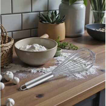 | Aduk Cepat dan Merata Dengan desain kawat melingkar yang dipadukan pegangan stainless steel 410, Anda dapat mengocok telur, mencampur adonan, atau mengaduk saus dengan hasil yang lebih cepat dan rata. Tekstur adonan menjadi lebih halus, mengembang sempurna, dan siap diolah tanpa memerlukan tenaga berlebih. |
