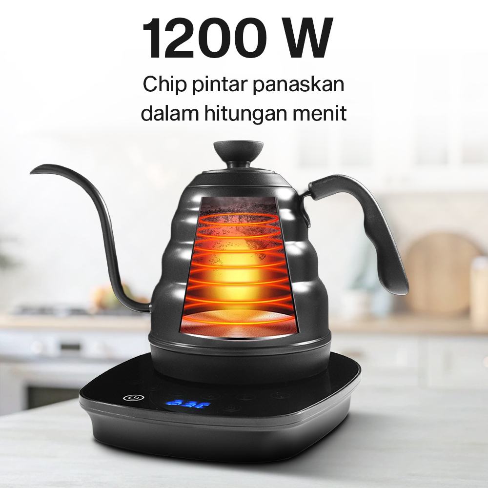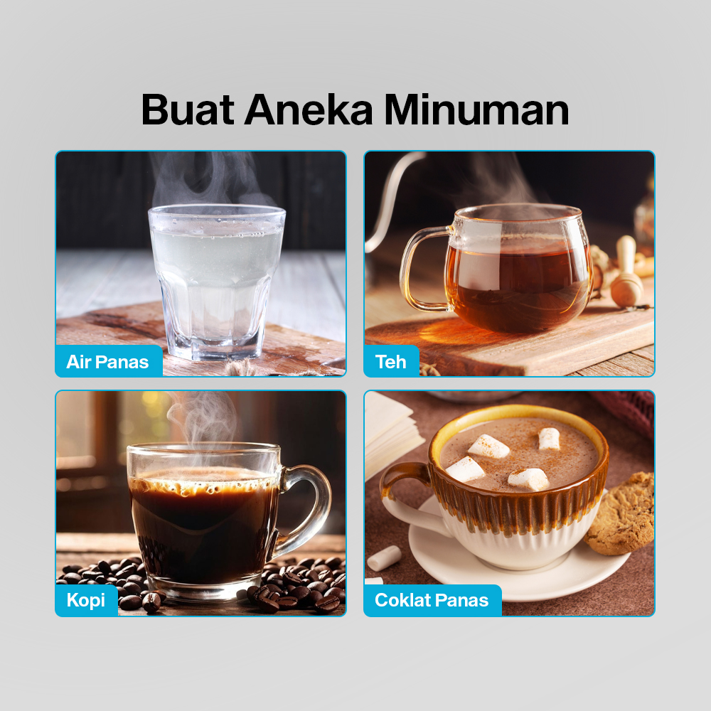 | Panaskan Air Tanpa Repot Teko listrik menggunakan pemanas air berdaya 1200 W yang dapat memanaskan air dalam hitungan menit dalam sekali klik. Kini Anda tak perlu repot menyalakan kompor dan mencuci panci lagi. |
