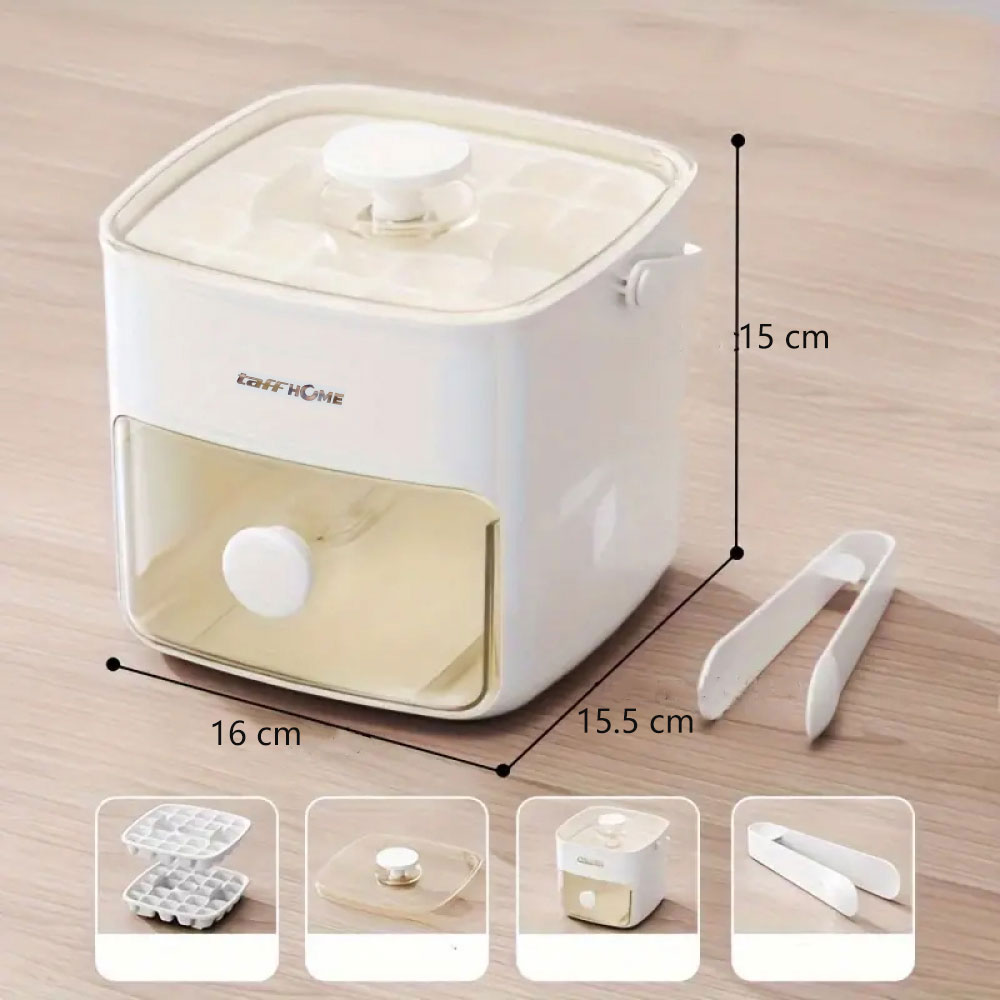 | Lengkap dengan Wadah dan Capitan Selain membuat proses membuat es batu lebih praktis, cetakan es batu dari TaffHOME juga hadir lengkap dengan wadah dan capitan untuk memudahkan Anda membawa dan mengambil balok es. Bagian depan wadah dilengkapi knob sehingga bisa dibuka seperti laci dan mencegah es batu tumpah saat cetakan dalam posisi miring. |