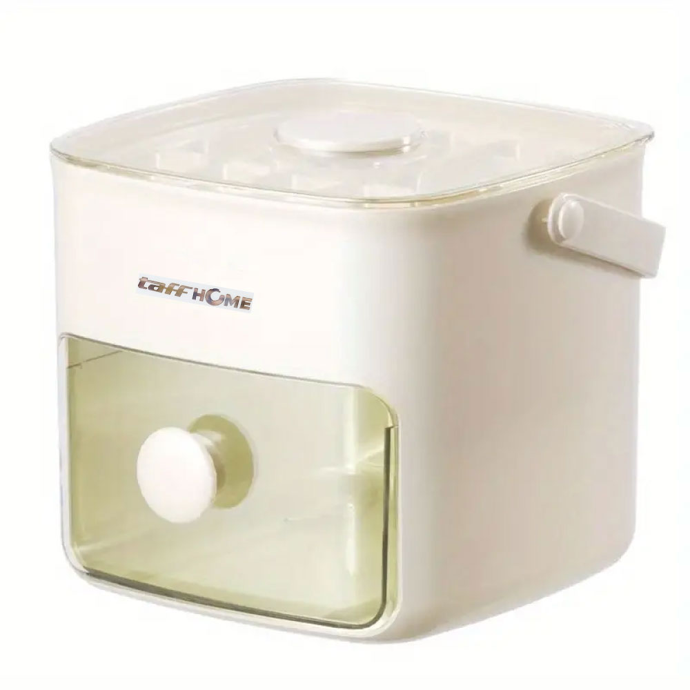 Tidak perlu lagi kesulitan mengeluarkan es batu berkat cetakan es batu dari TaffHOME. Sistem tekan yang diadopsi memungkinkan Anda untuk melepaskan seluruh es batu hanya dengan sekali tekan. Cara ini tentunya lebih efisien dibanding cetakan manual. Daya tampungnya juga cukup besar di mana Anda bisa membuat 48 balok es batu sekaligus.