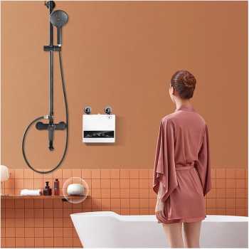 | Pemanas Instan 4200 W Dilengkapi elemen pemanas stainless steel dengan konduktivitas panas tinggi serta daya besar 4200 W, air dingin dapat dipanaskan menjadi air panas dalam waktu 3 detik saja. Teknologi pemanasan instan ini memungkinkan Anda menikmati air panas tanpa menunggu lama. |