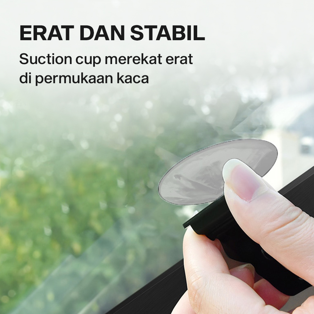 | Erat dan Stabil Perekat dengan model suction cup punya daya rekat kuat dan mudah dipasang. Cukup tempelkan pada kaca dan pelindung kaca mobil tetap stabil saat melewati berbagai medan. |