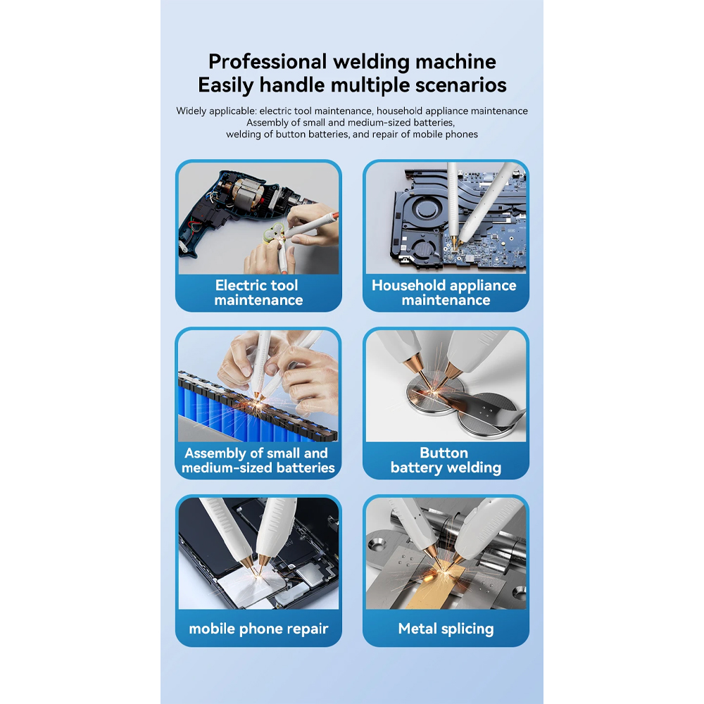 | Mendukung Pengelasan Material 0.4 mm Mesin ini mampu mengelas berbagai jenis material dengan ketebalan hingga 0.4 mm, termasuk nickel strip, steel sheet, solderable copper, pure nickel, dan copper sheet tipis. Ideal untuk perakitan pack baterai 18650, 21700, 32650, serta kebutuhan elektronik presisi lainnya. |