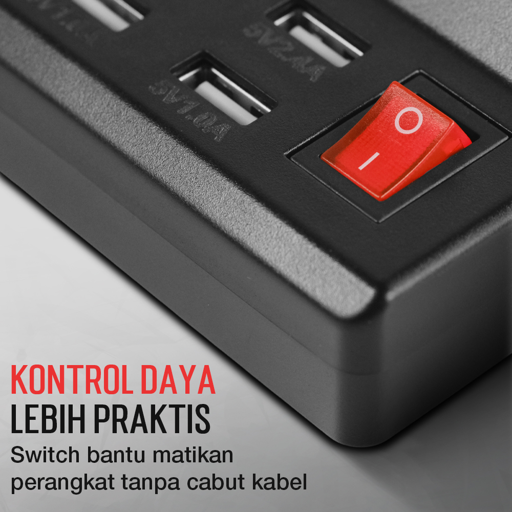 | Daya Optimal dan Stabil Setiap port pada USB memiliki daya hingga 5 V dan arus 1.0-2.4 A (total 12 A), optimal untuk pengisian cepat dan stabil ke semua perangkat. |