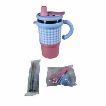 Baoluocc Botol Minum Tumbler Air Panas Dingin Handle Straw 600ml - ZY0269 - Blue/Pink