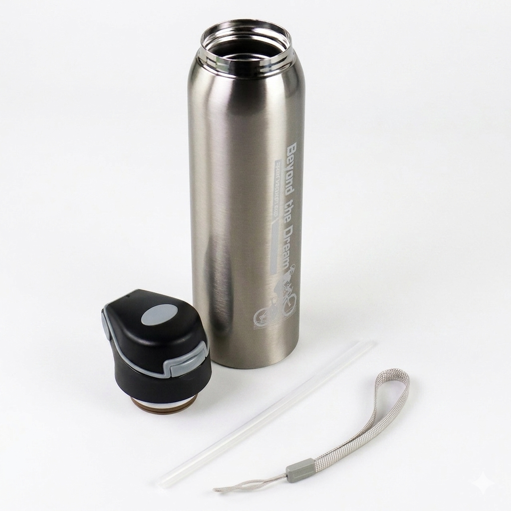| Material Stainless Steel 304 Premium Menggunakan bahan stainless steel 304 yang dikenal tahan karat, kokoh, dan aman digunakan untuk makanan serta minuman. Material ini membantu menjaga rasa minuman tetap netral tanpa bau mengganggu. Selain awet, permukaan dalam juga lebih mudah dibersihkan setelah digunakan. Cocok sebagai botol minum jangka panjang. |