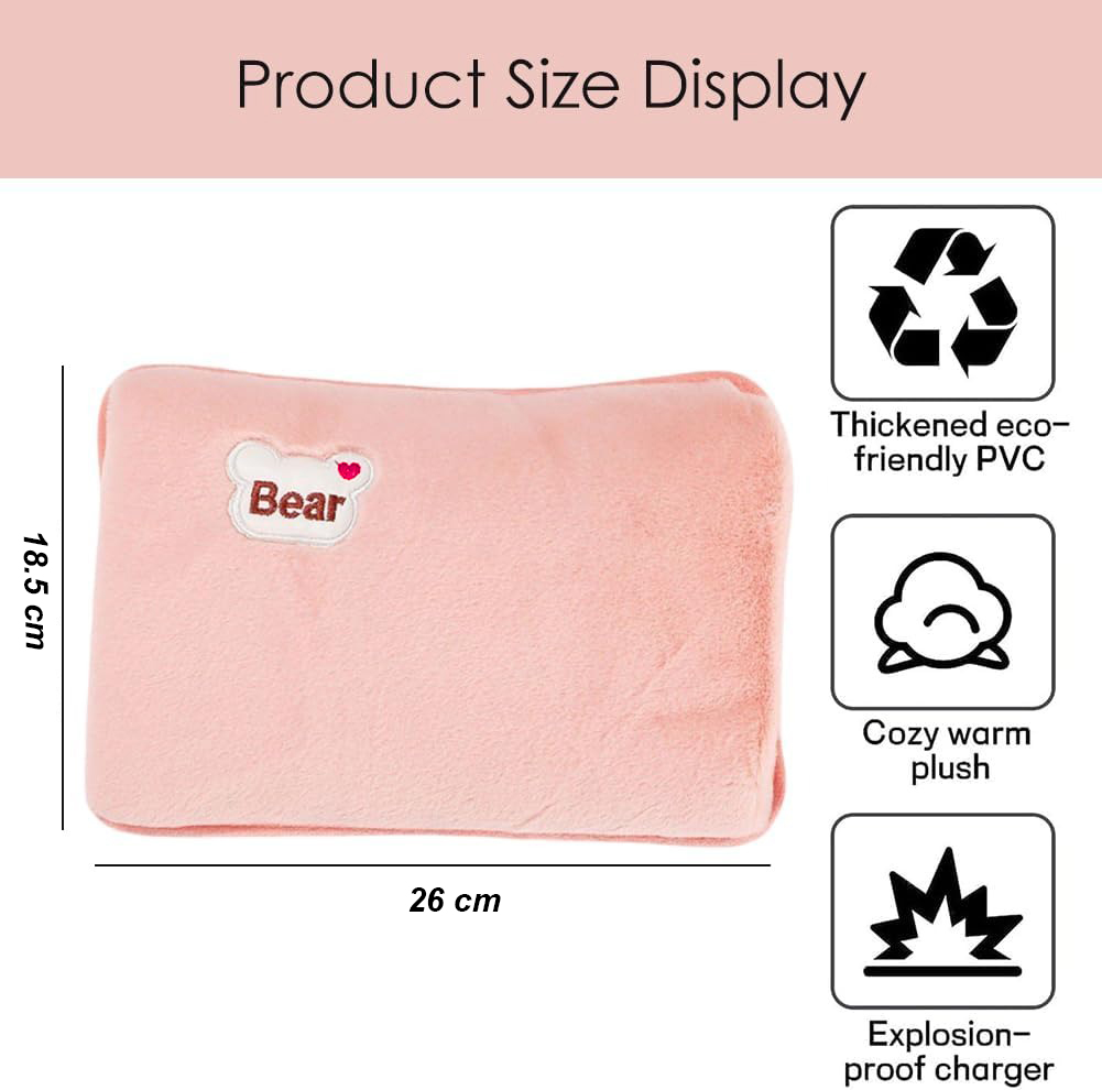 Bear hot water bag electric adalah bantal penghangat elektrik yang membantu memberikan sensasi hangat untuk meredakan pegal dan membuat tubuh lebih rileks. Cukup isi air lalu hubungkan ke listrik untuk memanaskan air di dalam bantal. Cocok digunakan untuk menghangatkan tangan, kaki, punggung, atau tubuh saat cuaca dingin.