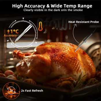 Nikmati cara baru dalam mengukur suhu makanan dengan BFOUR Smart Bluetooth Thermometer, termometer digital modern yang menggabungkan teknologi presisi tinggi dan konektivitas pintar. Dengan rentang pengukuran luas 1 - 300°C, single probe cepat 2 detik, Bluetooth 5.1 berjarak 100 M, serta layar LCD display yang informatif, BFOUR menghadirkan kenyamanan dan akurasi tinggi untuk pengalaman memasak yang profesional. Tambahan fitur timer dan alarm otomatis membuat Anda tak perlu terus memantau masakan, biarkan BFOUR bekerja, dan Anda tinggal menunggu hasil matang sempurna.