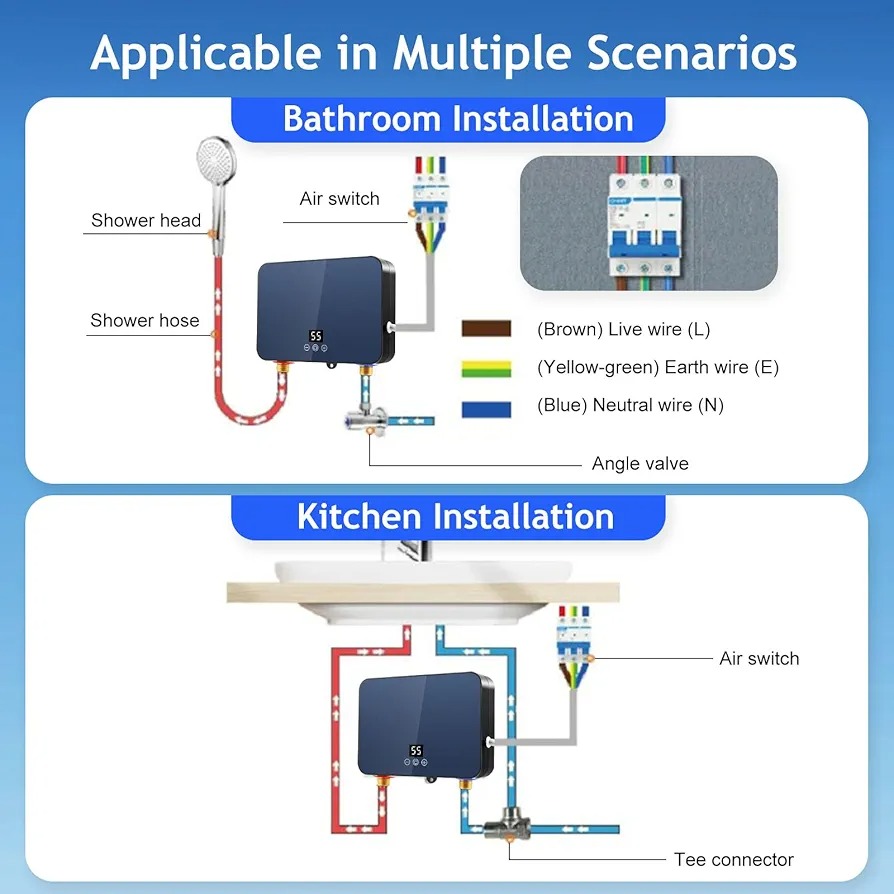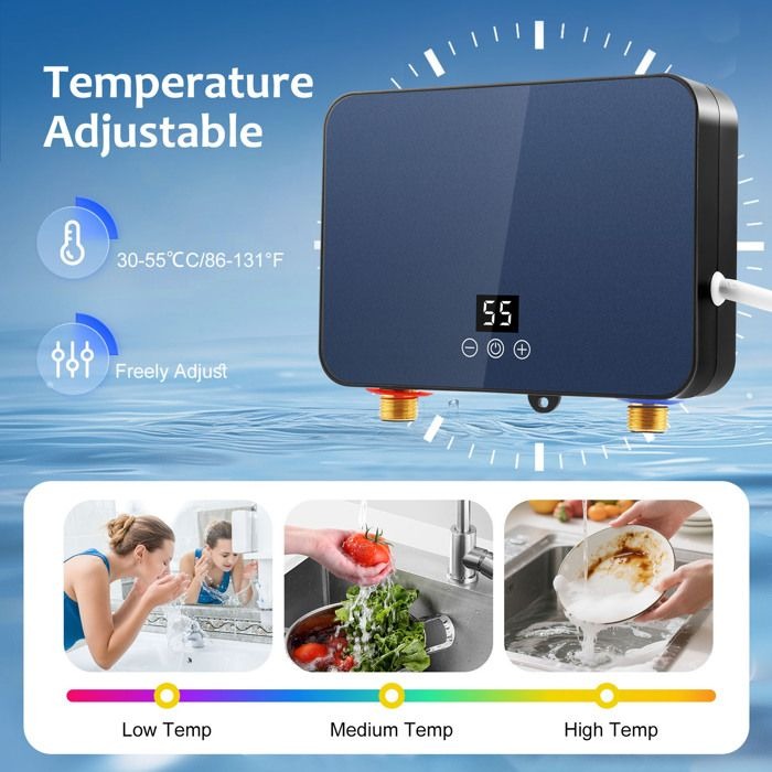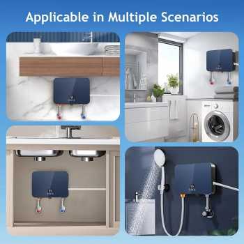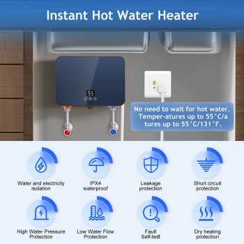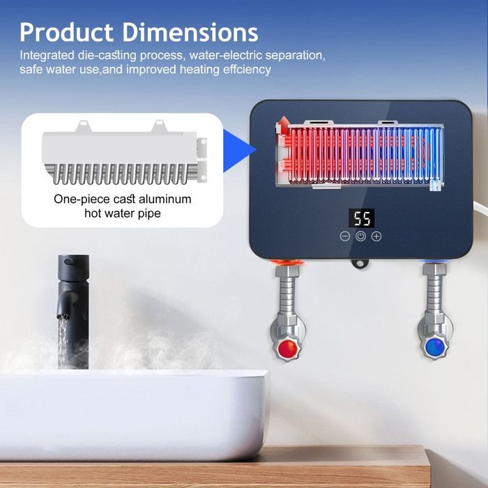 | Pemanas Instan 6000 W Dilengkapi elemen pemanas aluminium dengan konduktivitas panas tinggi serta daya besar 6500 W, air dingin dapat dipanaskan menjadi air panas dalam waktu sangat singkat. Teknologi pemanasan instan ini memungkinkan Anda menikmati air panas tanpa menunggu lama. |